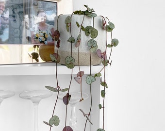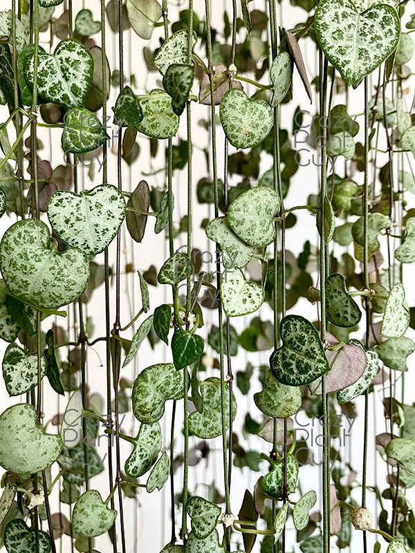 FREE Mystery Plant on all orders over 20 Express. The String of Hearts is a gorgeous trailing plant with heart-shaped leaves that trail down beautifully. Commonly known by the name String of Hearts they tend to be green in colour patterned with silvery-grey and purple on the underside.